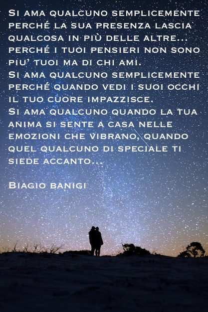 Si ama qualcuno semplicemente perché la sua presenza lascia qualcosa in più delle altre… perché i tuoi pensieri non sono piu’ tuoi ma di chi ami.